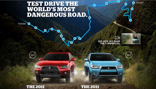 Šis kelias pelnė abejotiną „Mirties kelio” titulą, ir dėl geros priežasties. Tai yra vieta, kur net ir patyrę vairuotojai turi būti itin atsargūs. Tačiau Mitsubishi nusprendė išbandyti savo naujausius Outlander ir Outlander Sport modelius būtent čia, siekdami parodyti šių automobilių pajėgumus ekstremaliomis sąlygomis.